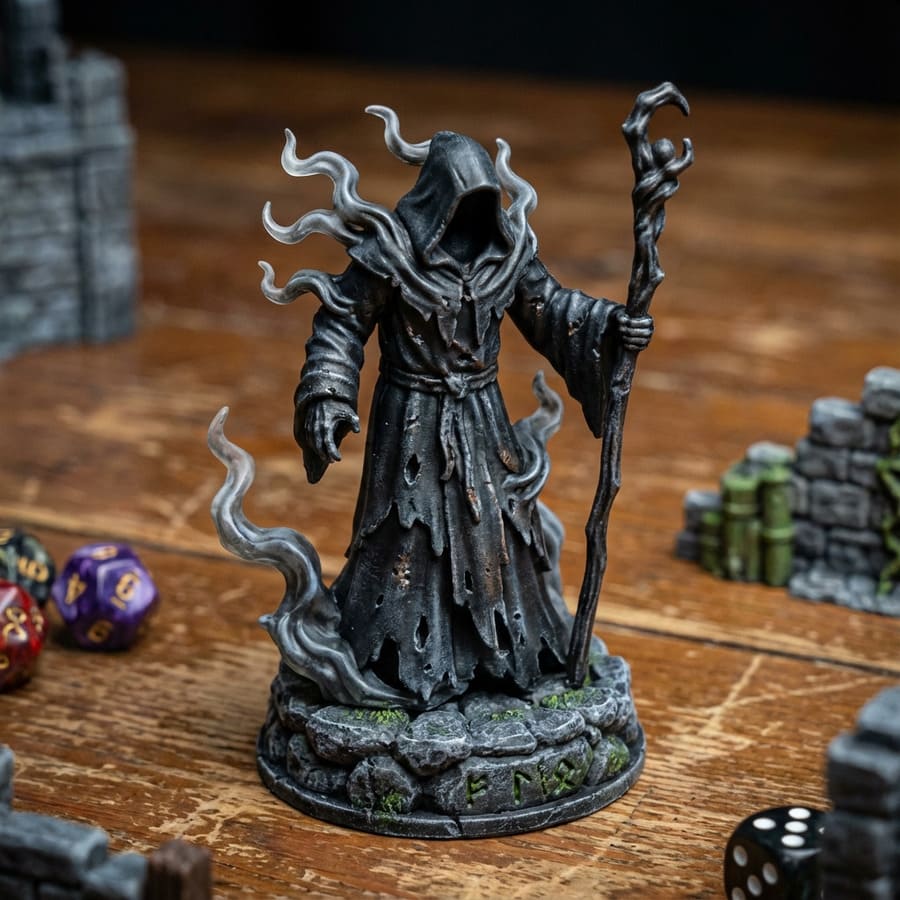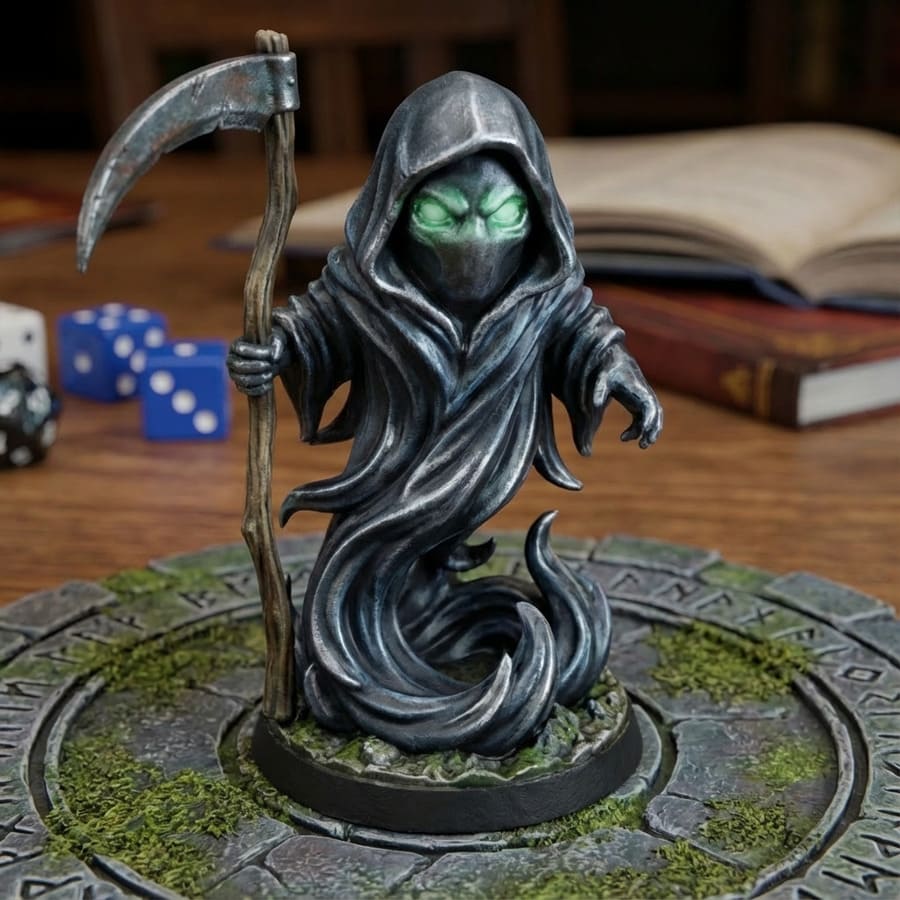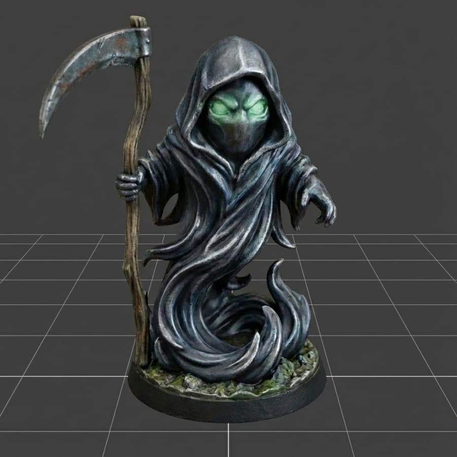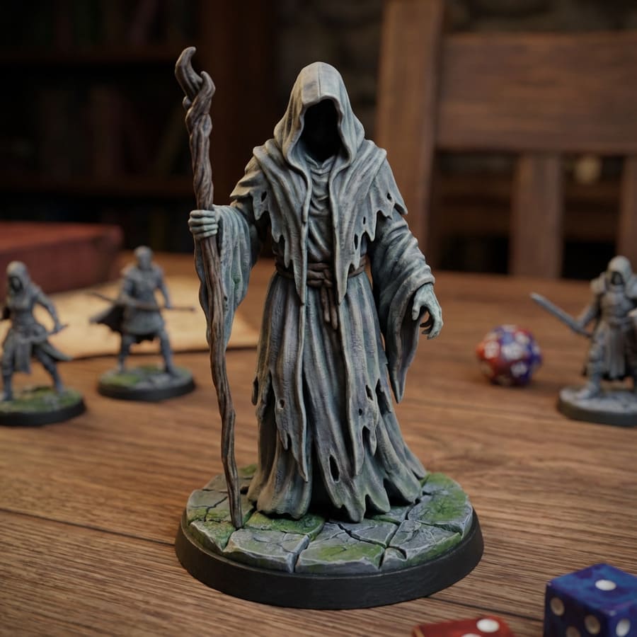 "a stylized 3d model of a hooded wraith, highly detailed, tabletop figurine"